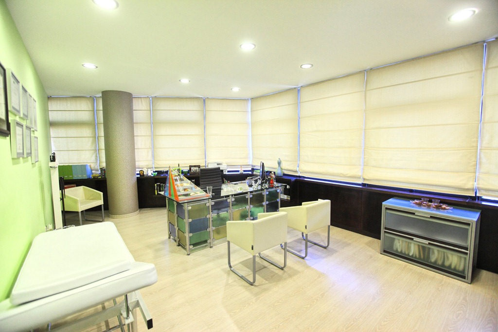 “Fully renovated nutritionist office located in the heart of Nicosia. The concept was to create a modern, functional, environment that felt homey and comfortable to the future clients. The color scheme is pretty neutral with just the right doses of green. The custom reception and the main desks are something unexpected. We also commissioned a local artist to paint the Logo of the nutritionist office.”