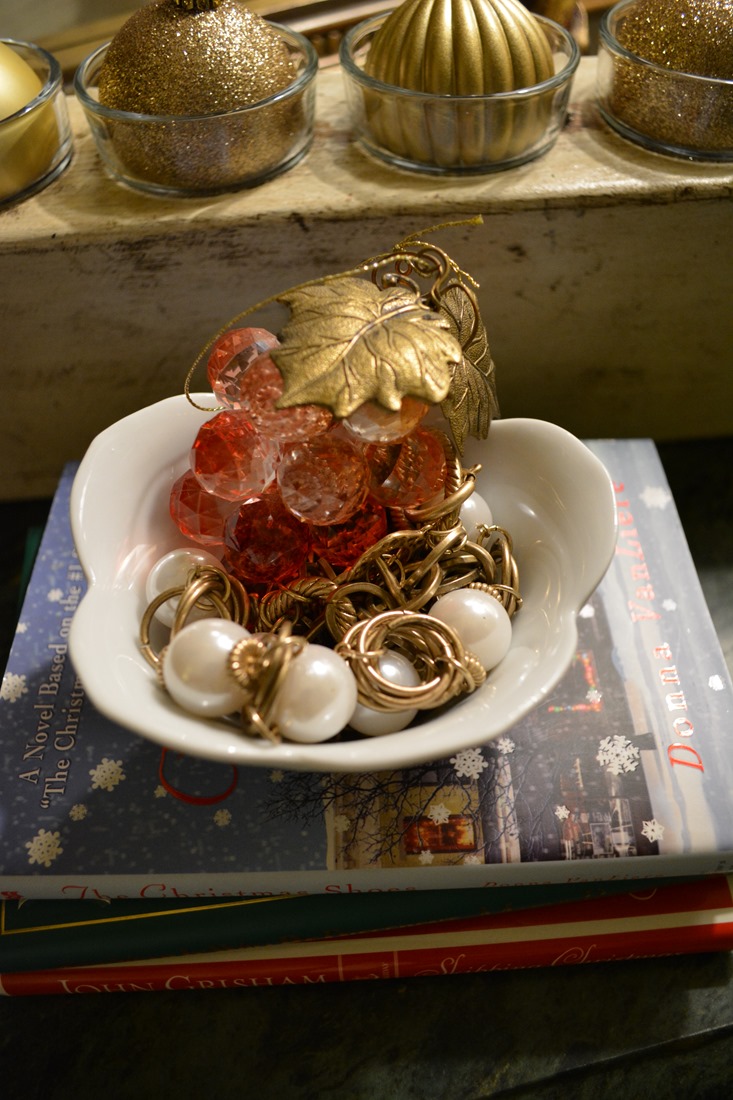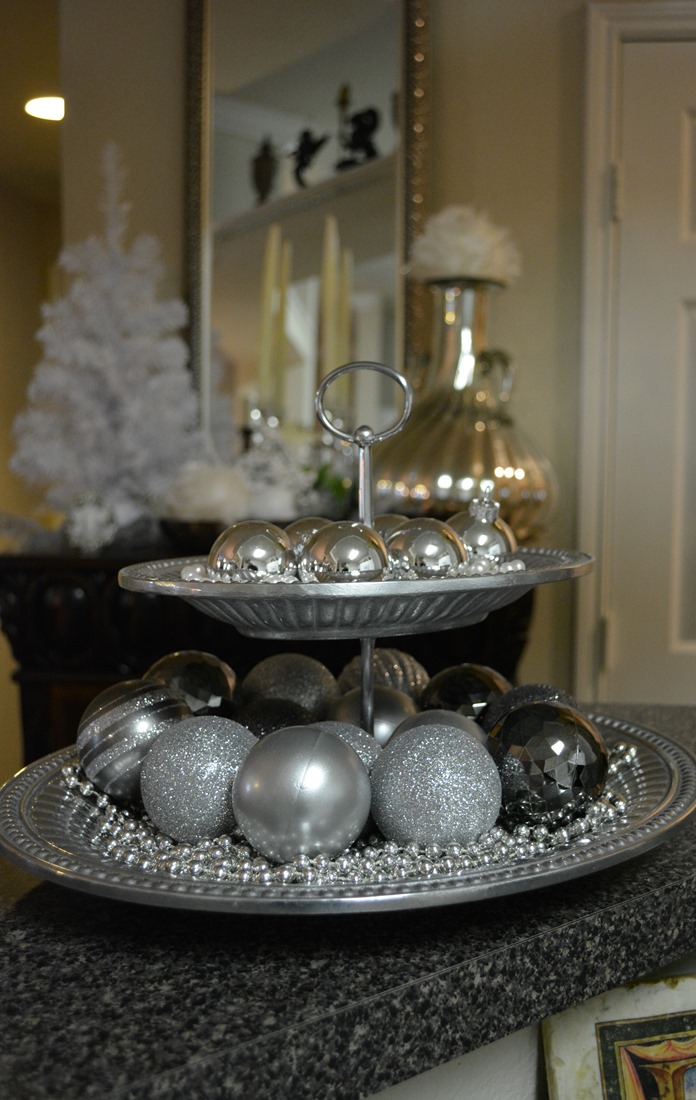 For the holidays I like to do a little decorating throughout the house, nothing over the top, some simple vignettes, lots of shiny ornaments and items that remind me of others and past events. I adore white, silver and gold, but it is hard not to incorporate some traditional green and red holiday decor that has been given to us over the years. Somehow it all seems to work together and brings us joy during the holidays. On Wednesday December the 11th I will be participating in the, «Tis The Season,» Blog tour where I will show more of my holiday decor, if you have time I would love for you to stop by.