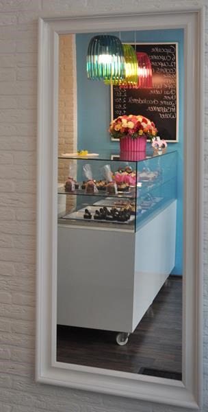 The wall that has been constructed in order to divide the kitchen from the shop has the passage and a framed window, which both let customers to have a pick into the kitchen to see where yummy, freshly baked cupcakes are being made. That way the kitchen atmosphere is brought into the shop.
