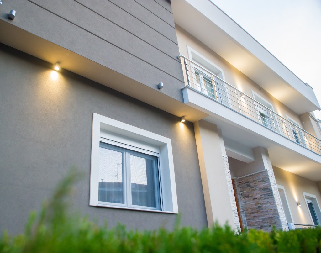 Αφορά την εξωτερική διαμόρφωση μιας διώροφης κατοικίας.