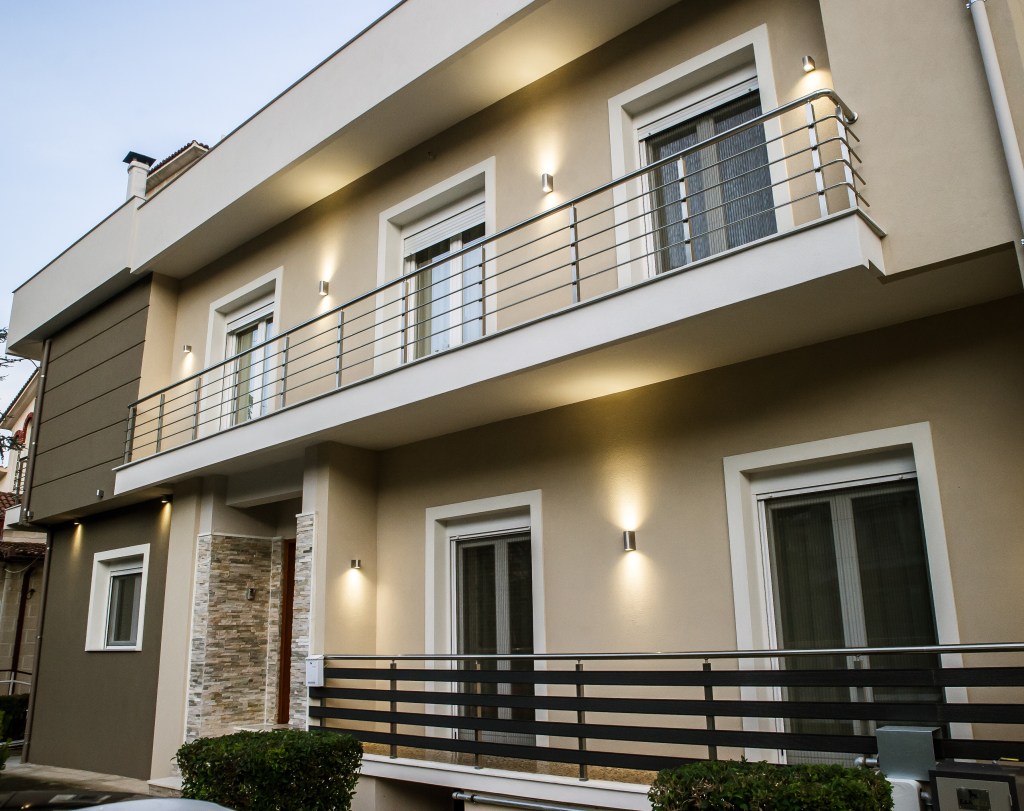 Έγιναν παρεμβάσεις στο εξωτερικό επίχρισμα, τοποθετήθηκαν καινούργια κουφώματα αντικαταστάθηκαν τα κάγκελα με νέα.