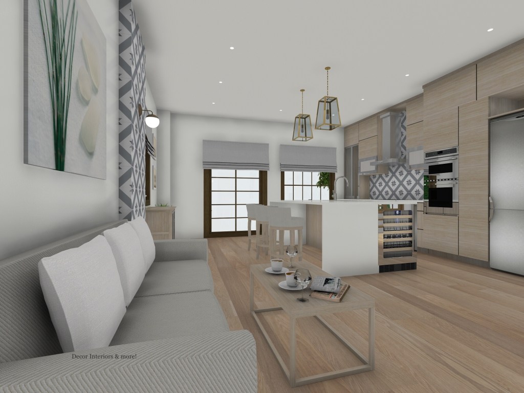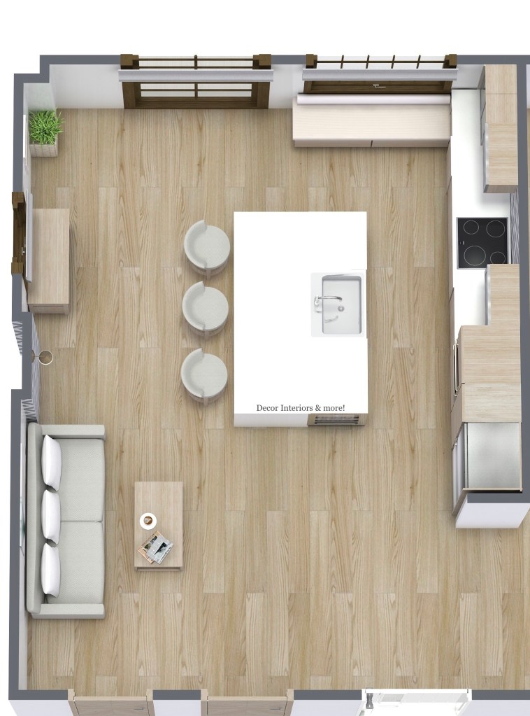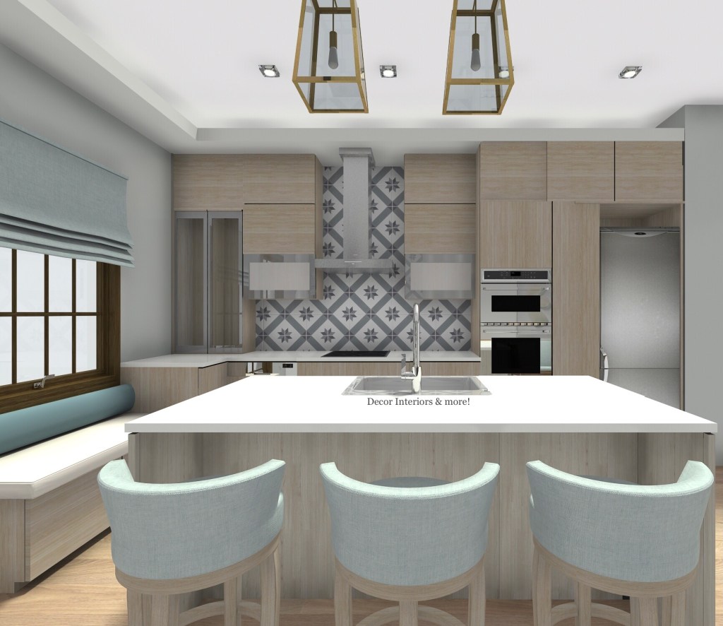 Σε ένα υπό κατασκευή σπίτι στο Πήλιο, έχει γίνει η παρακάτω μελέτη για τον χώρο της κουζίνας. Έγινε αξιοποίηση των τετραγωνικών με τον καλύτερο δυνατό τρόπο σύμφωνα με τις ανάγκες των ιδιοκτητών: κουζίνα με κεντρική νησίδα και γωνιά καθιστικού. Κάτω από το παράθυρο με την ωραία θέα κατασκευάστηκε παγκάκι με αποθηκευτικό χώρο και αναπαυτικά μαξιλάρια.