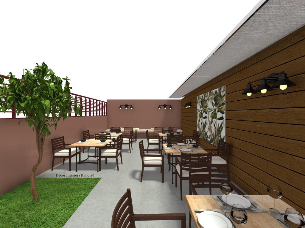 Παρουσιάζουμε 2 διαφορετικές προτάσεις, για την διαμόρφωση εξωτερικού χώρου, όπου θα φιλοξενεί τραπεζοκαθίσματα ενός εστιατορίου.