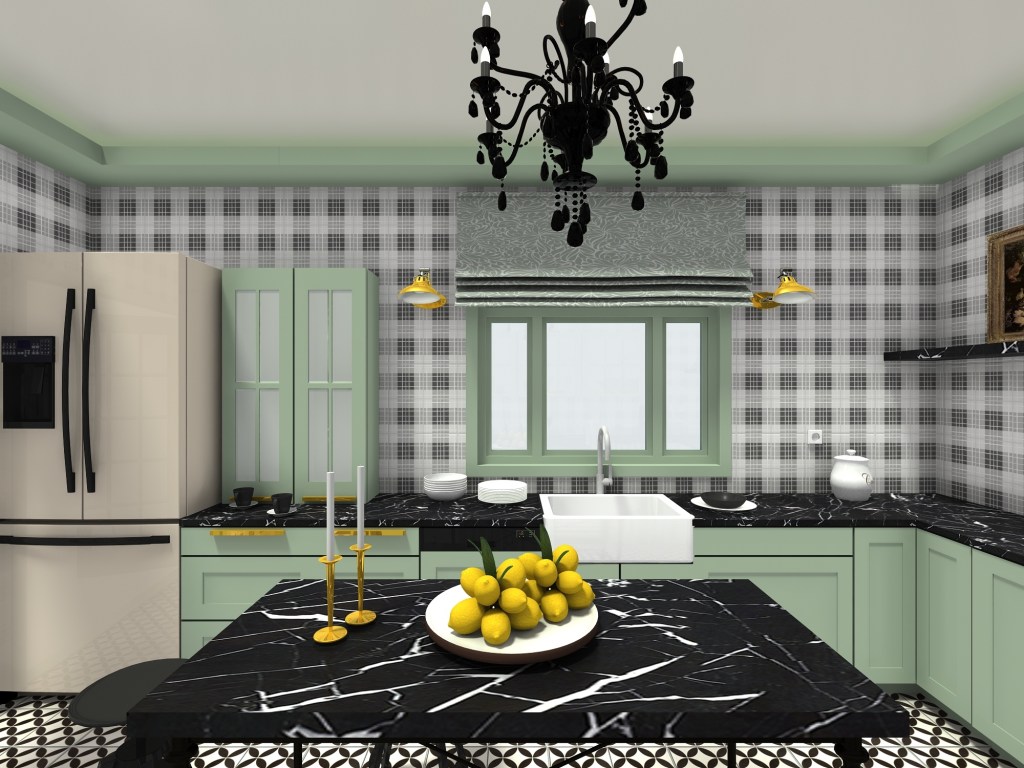 Interior design proposal for a country-chic style kitchen with a pantry. The following 3d presentation of the design proposal are 3d photos who have been created using RoomSketcher app and the precious help from Sarah of RoomSketcher‘s customer support.