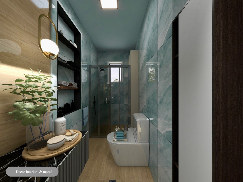 Στον 2ο όροφο μιας διπλοκατοικίας το μπάνιο, έπειτα από 17 χρόνια από την κατασκευή του έχριζε ανακαίνισης. Ζητήθηκε η κατάργηση της μπανιέρας και να διαμορφωθεί με ντουζιέρα. Παρουσιάζουμε την τρισδιάστατη απεικόνιση από τον σχεδιασμό του χώρου: