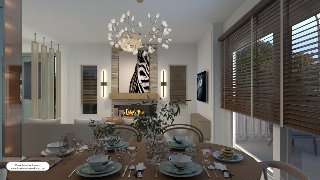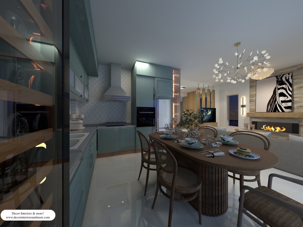 Ο χώρος του ισογείου όπου αναπτύσσονται κατά την είσοδο: σαλόνι, τραπεζαρία, καθιστικό-χώρος τζακιού και κουζίνα: