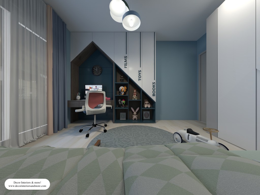 Στον 2ο όροφο έχουμε τη ζώνη νύκτας του σπιτιού: κυρίως υπνοδωμάτιο και τρία παιδικά δωμάτια: