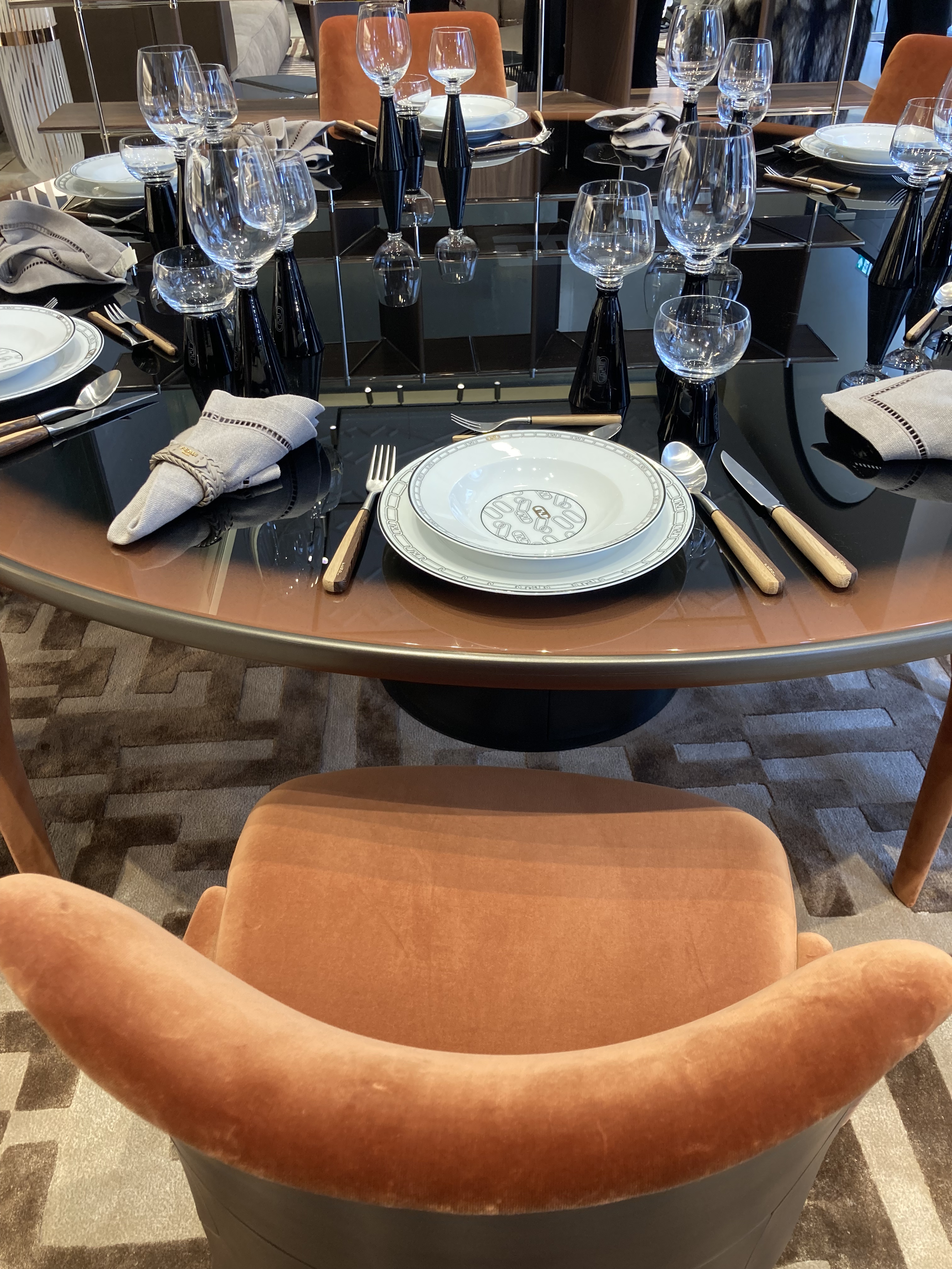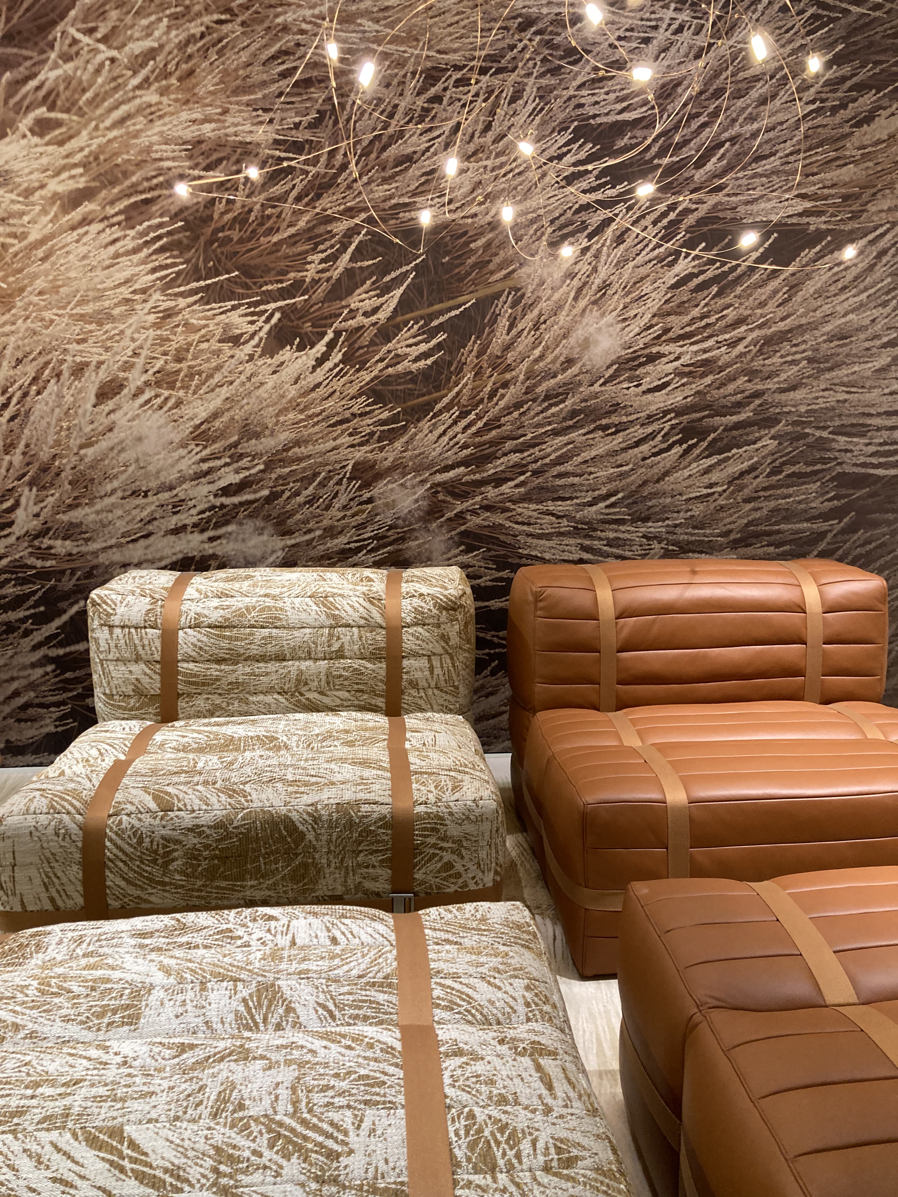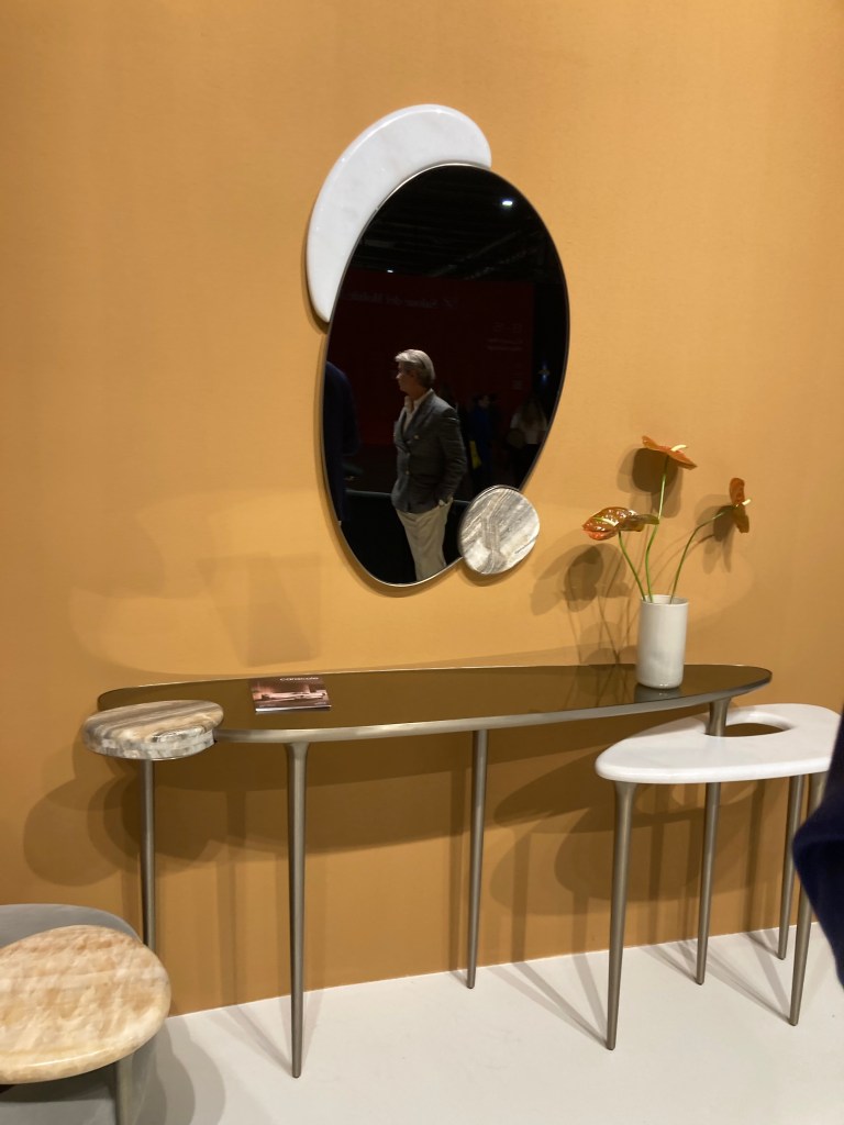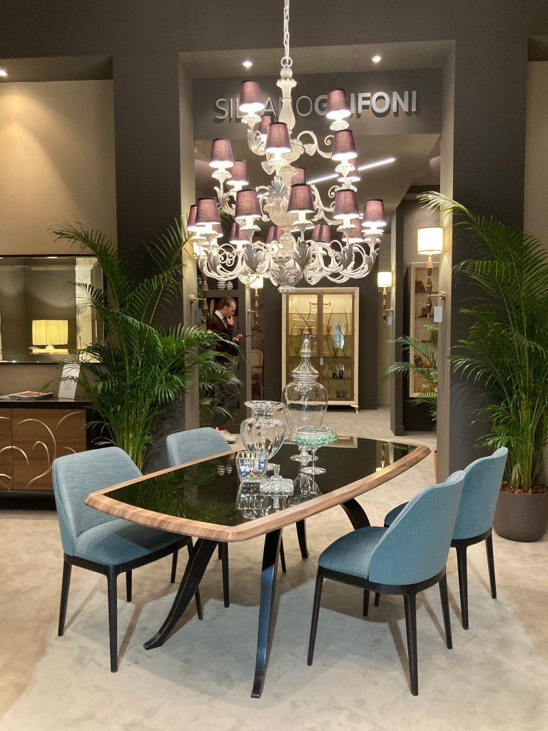 Elegant dining area featuring a modern chandelier and a decorative floral arrangement.Entrance to the Chiara Provasi exhibit showcasing elegant interior design with unique lighting and furniture.A stylish reflection in a beautifully arranged interior design setting, showcasing elegant decor and greenery.Elegant dining setup Silvano Grifoni featuring a modern table and stylish chandelier, showcased during the Milan design week.A stylish interior setup featuring pink lounge chairs, a circular marble table, and a decorative vase surrounded by greenery.A stylish console table with unique stone stools and a decorative mirror, showcasing modern design at the Milan Design Week.A modern floral arrangement in elegant vases atop a sleek wood dresser caracole. Elegant interior featuring a modern lighting fixture and stylish furniture design in Milan.Modern living room featuring a stylish dark blue armchair with gold accents, elegant decor, and contemporary lighting.Stylish wooden cabinet with modern design, showcasing craftsmanship at Milan Design Week.