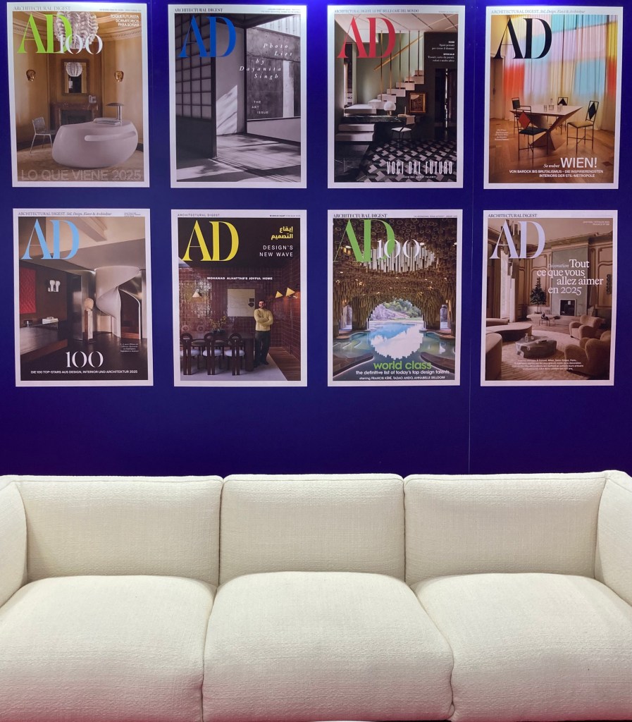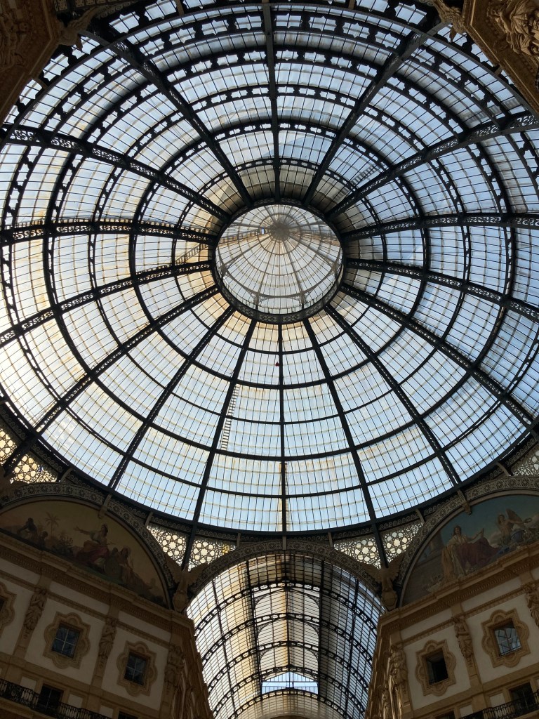 Intricate marble flooring design featuring ornamental patterns, accompanied by golden lion sculptures, showcasing elegance in Milan’s design landscape.A display of Architectural Digest covers showcasing contemporary design themes at a Milan design event.A modern design workspace featuring a unique table and stylish seating, showcasing the essence of Milan Design Week.Elegant lamp and floral arrangement showcasing modern interior design furniture at Salone del Mobile’s Bellavista Collection standA beautifully decorated coffee station at Camparino in Milan, featuring ornate mosaic walls and stacked cups.Milan Design WeekStunning architectural detail of the glass dome in Milan, showcasing the city’s design heritage.