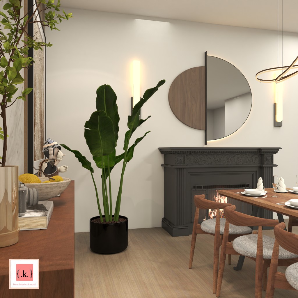 Μελέτη διαμόρφωσης του σαλονιού και της τραπεζαρίας σε μονοκατοικία σε προάστιο της Αλεξανδρούπολης. Επιλέχθηκαν κατά την επιλογή των υλικών αποχρώσεις γήινες, με έμφαση στις δρύϊνες ξύλινες επενδύσεις των τοίχων. Υφάσματα επιπλώσεων και σκίασης εμπνευσμένα από το κρέμ ώστε να πετύχουμε αρμονία και ισορροπία στον χώρο.